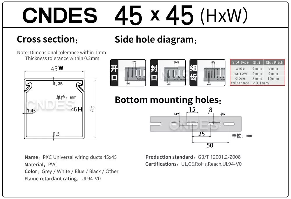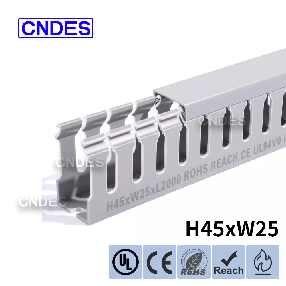 Présentation du conduit de couverture de fil en PVC à fente personnalisé de 45 mm de hauteur de CNDES, votre solution incontournable pour une gestion efficace des câbles dans une variété d'applications. Que vous conceviez un nouveau panneau électrique, amélioriez la configuration du câblage de votre machine ou amélioriez le système électrique de votre maison, notre conduit de couverture de fil en PVC à fente en hauteur offre l'équilibre parfait entre fonctionnalité et attrait esthétique.