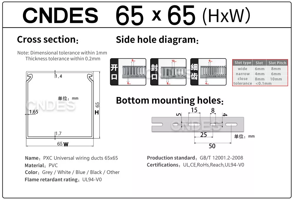 En tant que fabricant professionnel, nous aimerions vous fournir un chemin de câbles en PVC à fente 65 × 65 CNDES.