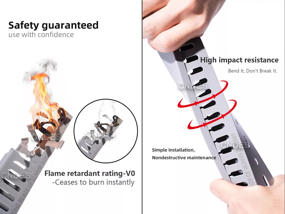 2. Résistance de qualité industrielle, sûre et fiable : le conduit de câblage de tableau de distribution en PVC à fente 80 × 80 de qualité est fabriqué en PVC ignifuge épaissi (UL94-V0), ce qui le rend robuste, durable, résistant aux chocs et avec une excellente capacité de charge. Il offre une protection durable aux câbles même dans des environnements vibratoires.