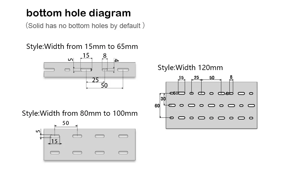 Les spécifications du chemin de câbles sont exprimées en hauteur * largeur, l'unité étant en mm. Tout d’abord, déterminez la taille requise du chemin de câbles, par exemple 80 mm de hauteur et 40 mm de largeur. Ensuite, sélectionnez la largeur du trou de sortie en fonction de l'épaisseur du câblage, soit des dents larges (8 mm), soit des dents fines (4 mm). Il est recommandé que le câble lui-même n'occupe pas plus de 70 % de l'espace du plateau.