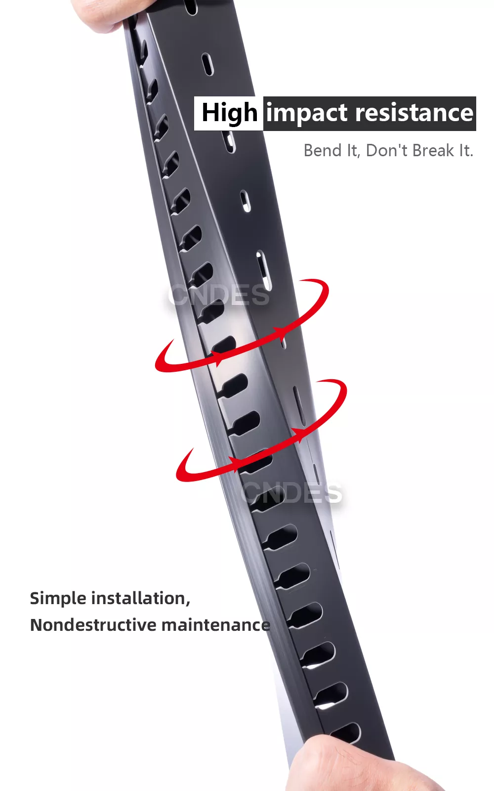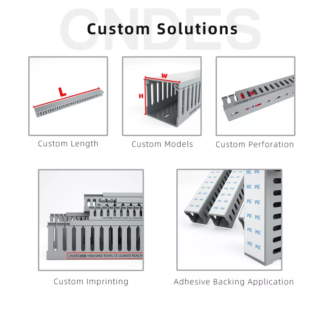 CNDES, en tant qu'usine professionnelle de R&D et de fabrication de goulottes de câblage en PVC à fente noire en Chine, se spécialise dans la production de masse, le contrôle de qualité ISO strict et le service OEM/ODM. Les boîtiers noirs sont couramment utilisés dans les scénarios nécessitant un câblage dissimulé (comme les cinémas maison ou les bureaux) ou pour distinguer différents circuits fonctionnels (par exemple, lignes haute tension et basse tension), améliorant ainsi l'efficacité de la gestion.